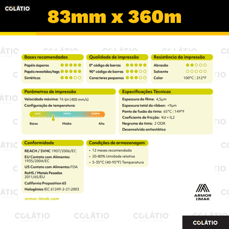 AWXFH, ribbon com perfeita fixação, alta resistência da impressão e qualidade de impressão superior. Mantem sua qualidade mesmo em altas velocidades e impressão em rotação. AWXFH, ribbon de alto desempenho e fixação reforçada para aplicações exigentes.